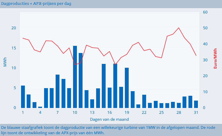 Tabel dagproductie van een willekeurige turbine van 1 MW in augustus 2019